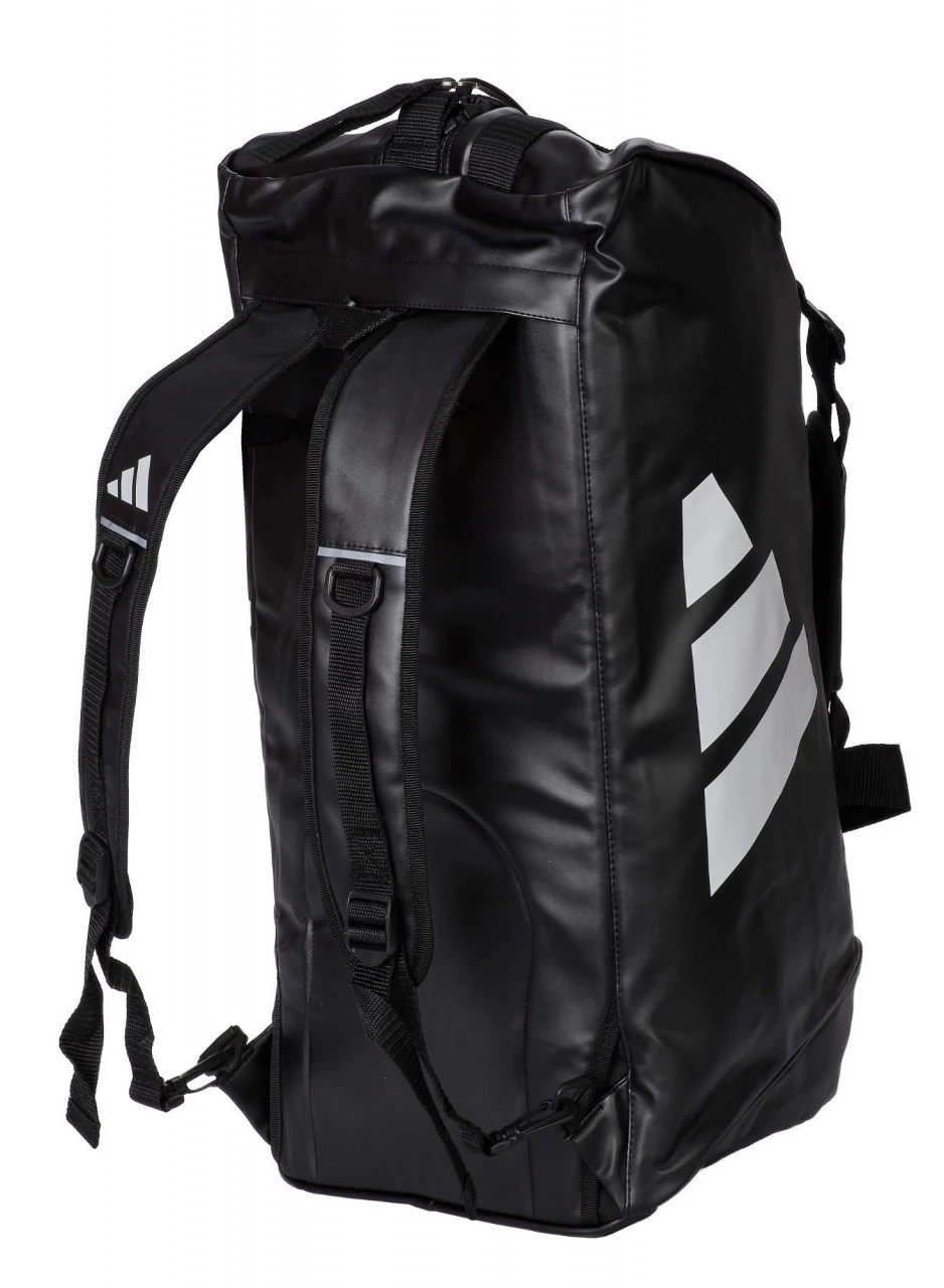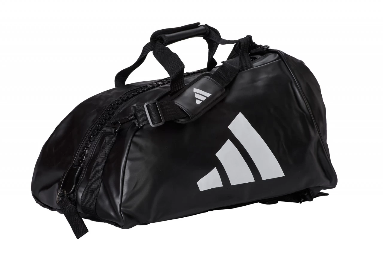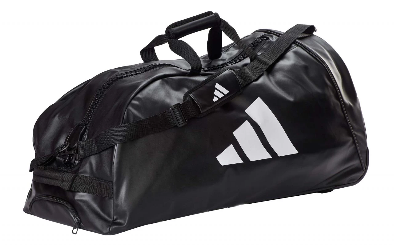 Die Sporttaschen aus der neuen adidas Martial Arts Kollektion kommen in einer großen Modell- und Größenauswahl, sodass nicht ausschließlich Kampfsportler ihre Freude daran haben werden. Alle Modelle sind aus hochgradig strapazierfähigen, langlebigen und leicht zu pflegenden Materialien hergestellt. Die 2in1 Bag ist nicht nur genau auf die Bedürfnisse von Kampfsportlern zugeschnitten, sondern auch besonders praktisch, weil sie gleichzeitig auch ein Backpack ist. Die Trageriemen sind in einer speziellen Schutztasche platziert. Wie bei allen Modellen aus der aktuellen Kollektion bietet diese ein geräumiges Hauptfach mit einem stylischen und schnell verschließbaren Big Zipper. Ein zusätzliches Seitenfach mit einer integrierten Netztasche für sicheres Verstauen kleiner Sachen ist auch vorhanden. Alle Fächer und Taschen sind mit einem Reißverschluss ausgestattet. Für optimalen Tragekomfort sorgen weiche Polsterungen an Schultergurt, Haltegriffen und Riemen. Das Modell ist in je zwei Größen und Designausführungen erhältlich. Außerordentlich robustes Polyurethan garantiert hohe Lebensdauer.