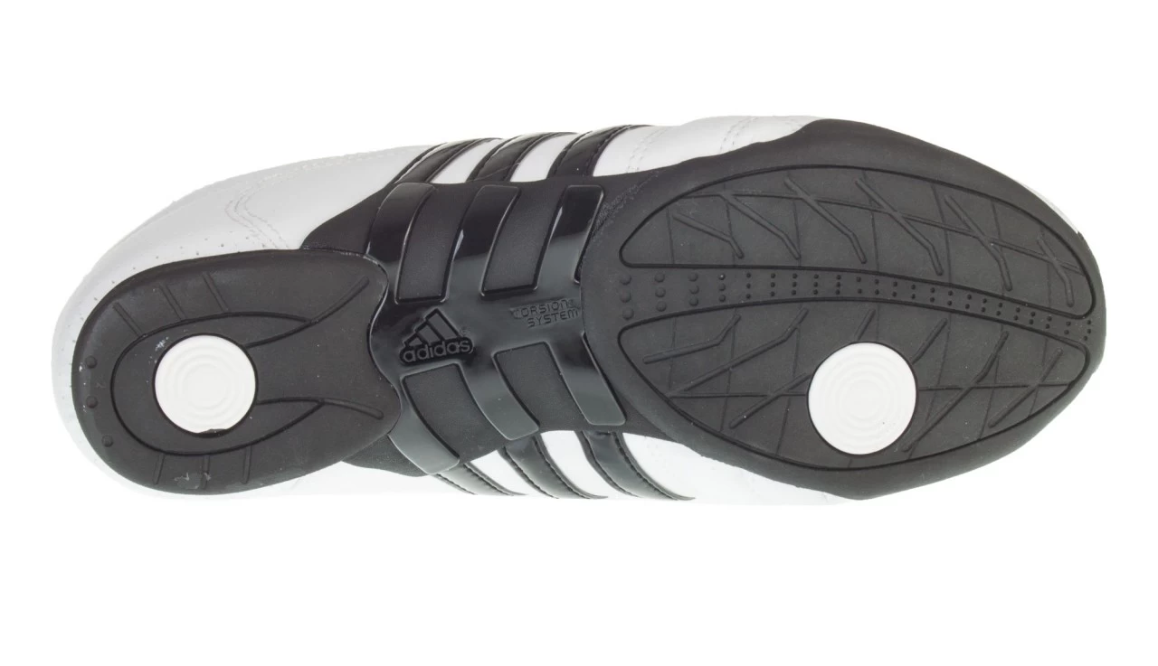 Die dreigeteilte Sohle besteht aus separaten Fersen- und Vorderfußteilen, aus weichem Gummi. Der Mittelfuß wird durch eine Hartplastikeinlage im adidas Design gestützt.
