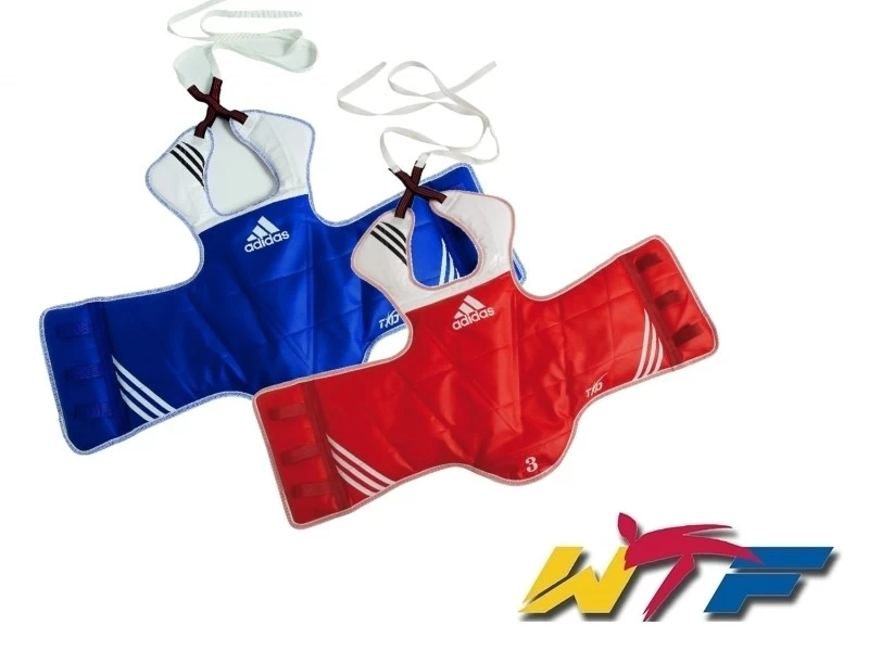 Anatomisch geschnittene Wendeweste, nach den neuen WTF Regeln. Eine Seite komplett blau, eine Seite komplett rot.Schnürverschluss auf der Rückseite. Die adidas Kampfweste reversible ist von der World Taekwondo Federation (WTF) offiziell zugelassen. Aus Markenrechtlichen Gründen, ist der Vertrieb der ADIDAS Taekwondo- und Sportartikeln nur in Deutschland möglich. Kunden mit Sitz außerhalb Deutschlands, wenden sich bitte an ihren zuständigen ADIDAS-Ländervertreter in ihrem Land!