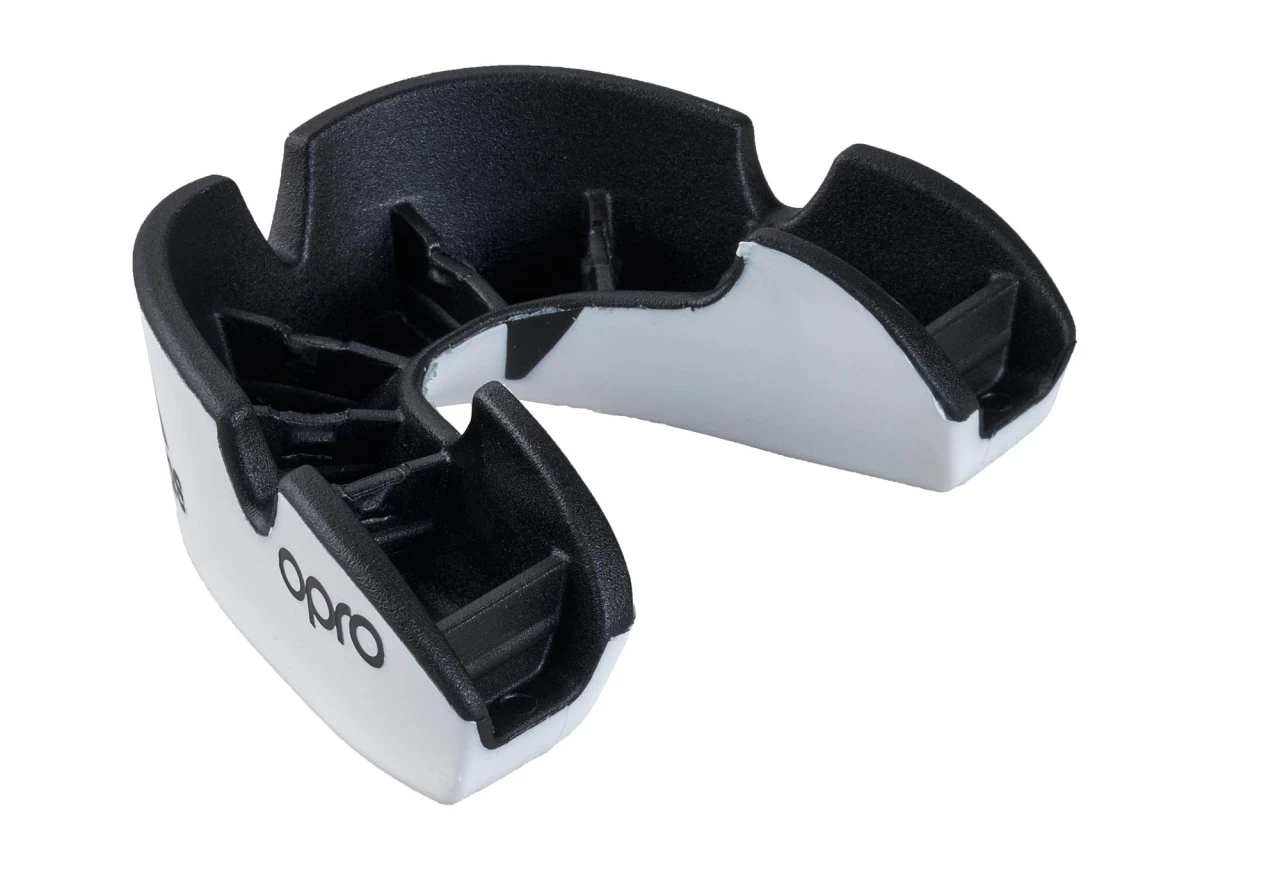 Der zweilagige Zahnschutz von Opro, mit haltbarer Außenschicht für mehr Aufprallschutz (im Vergleich zum Bronze-Level)