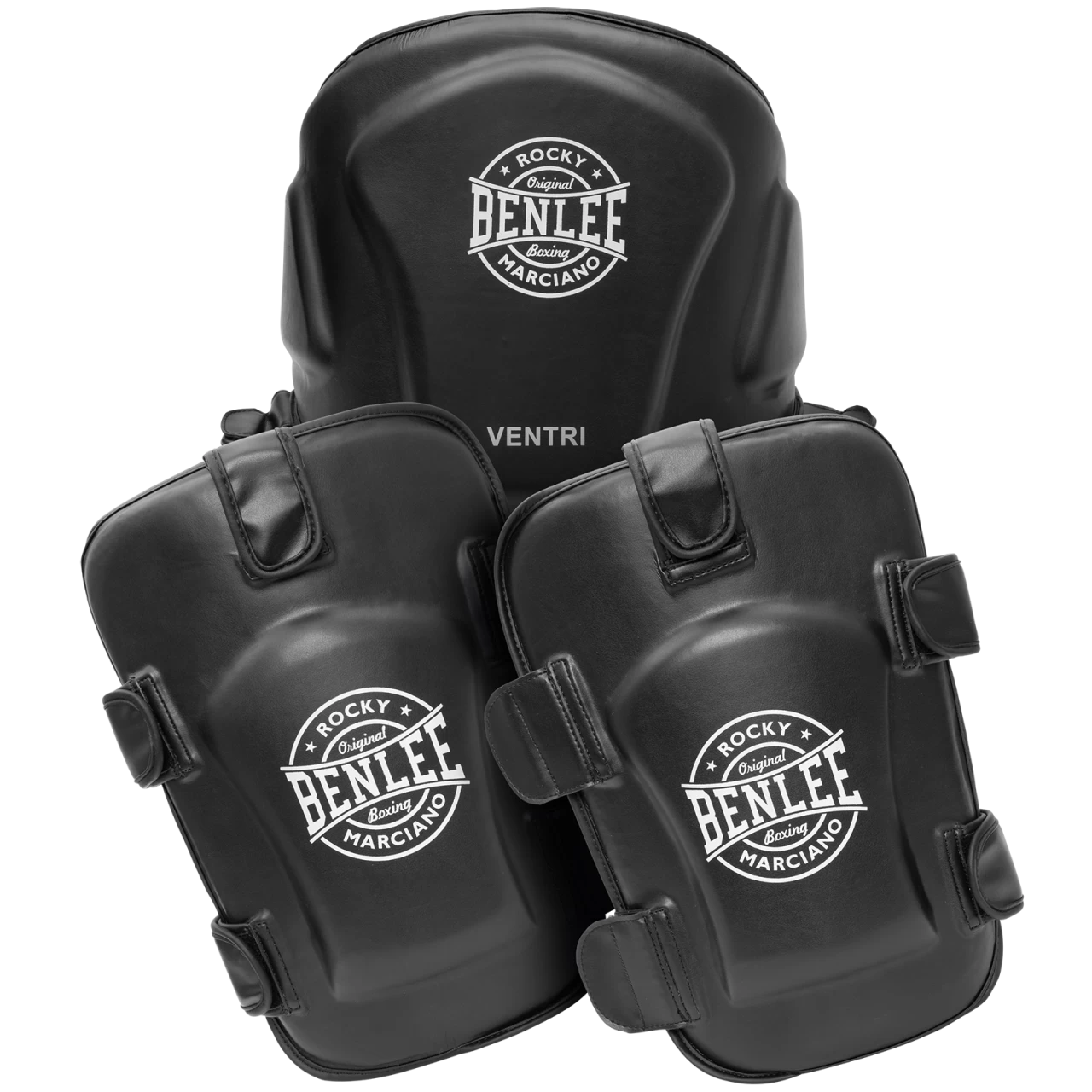 Das BENLEE Belly Protector & Thigh Pads Set „VENTRI SET“ wurde zum Schutz des Bauchraums entwickelt und hergestellt. Es besteht aus einer stoßabsorbierenden Schaumstoffpolsterung mit zusätzlichen vorderen und seitlichen Zielbereichen. Verschluss durch Klettverschluss auf der Rückseite für einen sicheren und festen Sitz. Das Set wird mit zwei Oberschenkelpolstern geliefert, die mit Klettbändern mit dem Bauchpolster verbunden sind.