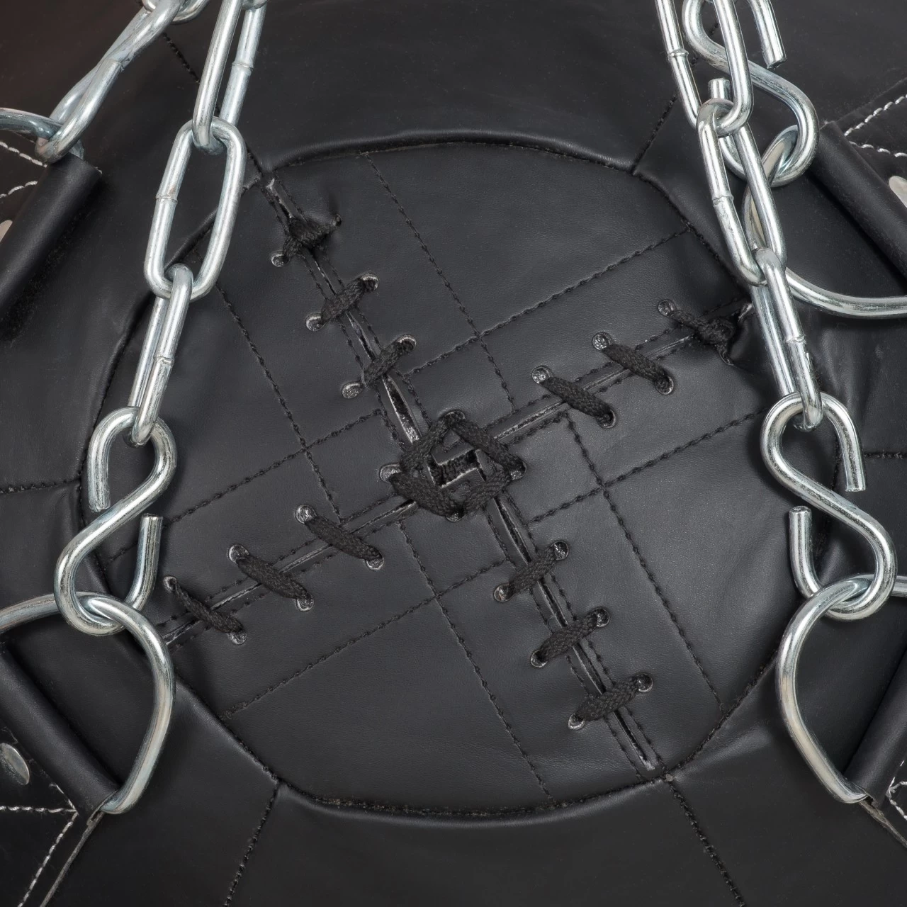 Der Wreckingball LEONARDO wurde aus strapazierfähigem, reißfestem Kunstleder mit verstärkter Aufhängung gefertigt. Durch die verchromte 3-Ketten-Aufhängung aus Stahl mit Drehgelenk wird eine längere Haltbarkeit erreicht. Der mit zerfetztem Stoff gefüllte Boxsack ist ideal zum Üben von Uppercuts, Haken, Straights und Body-Punches.