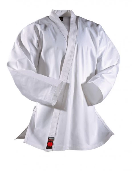 Mittelschwerer, traditioneller Karateanzug aus 100% Baumwolle in 9 oz. Ausführung. Über Jahre hinweg bewährtes Modell für Einsteiger und Fortgeschrittene. Sehr bequemer Schnitt sorgt für höchsten Tragekomfort. Hose mit Elastikbund. Lieferung erfolgt mit weißem Gürtel.