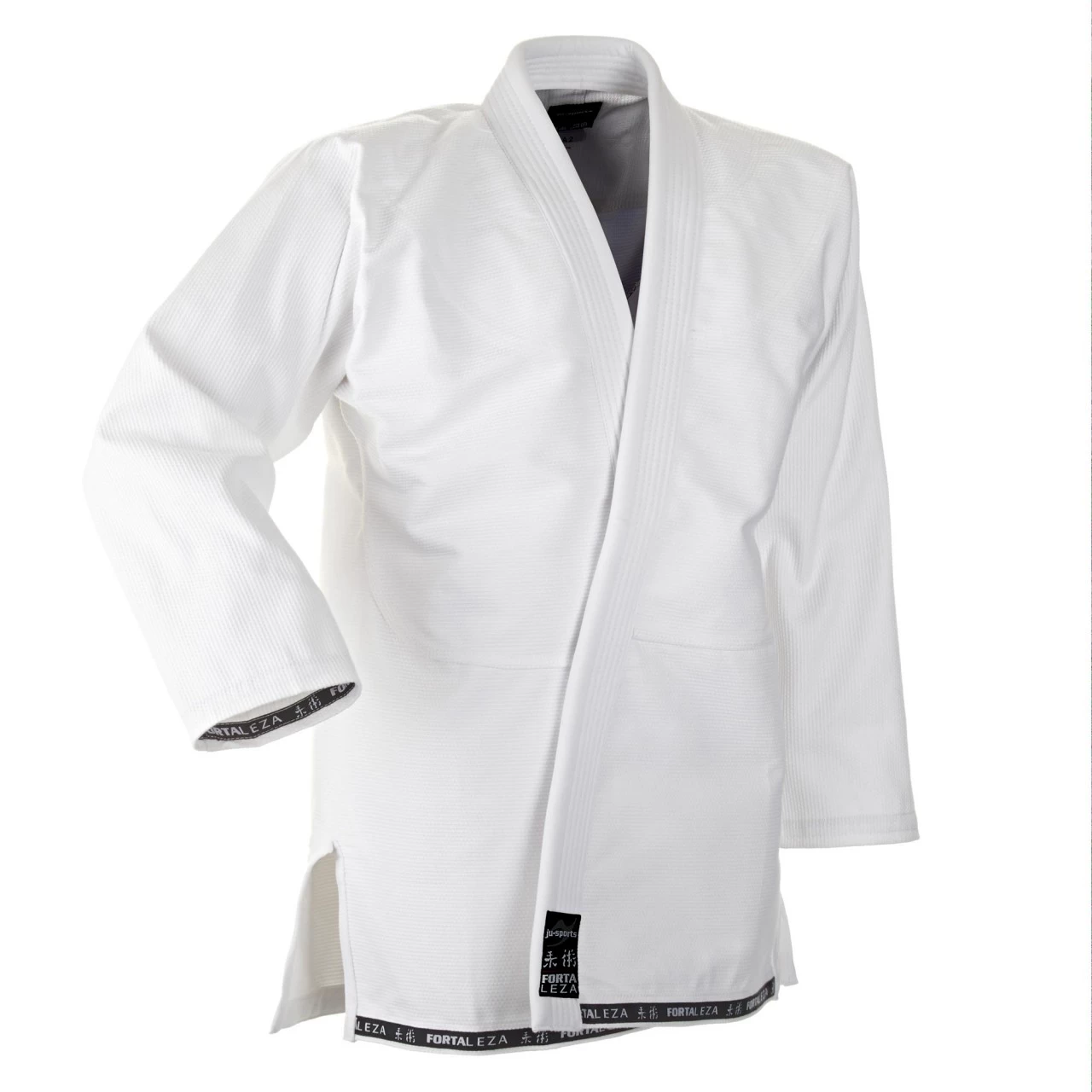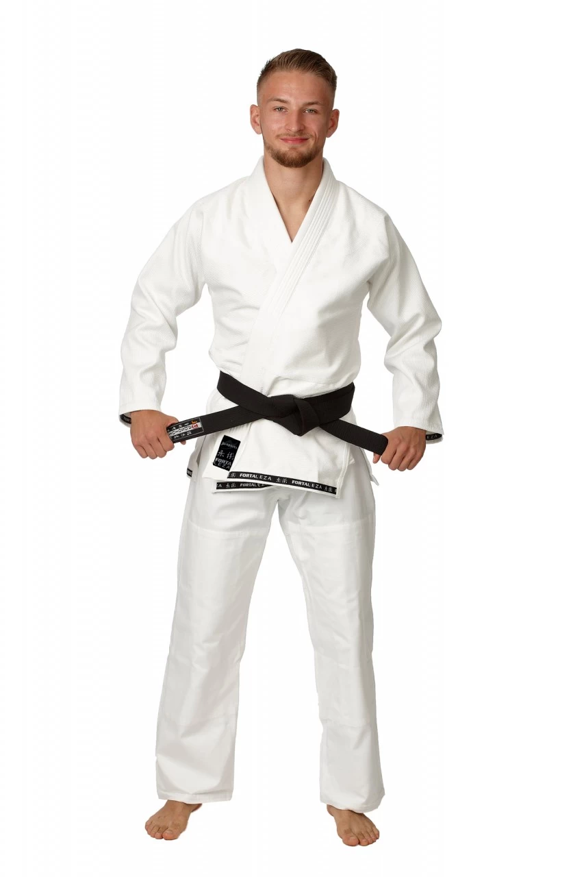 Die Fortaleza pro Jacke hat ein direktes, unaufdringliches Design und ist gut mit allen kombinierbar. Man kann auch gut Logos sticken bzw. Patches anbringen – gerne auf Anfrage. Sie ist aus 100 % Baumwolle in einer Semi-Pearl Webung. Es handelt sich um 450 Gramm Gewicht pro qm Stoff und ist dabei stabil genug für das tägliche Training und gleichzeitig nicht zu schwer. Die Jacke ist aus einem Stück geschneidert. An den beanspruchten Stellen ist die Jacke extra verstärkt. Das Beste jedoch ist das Größenangebot in folgender Auswahl: