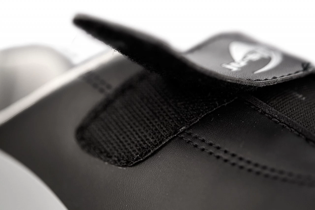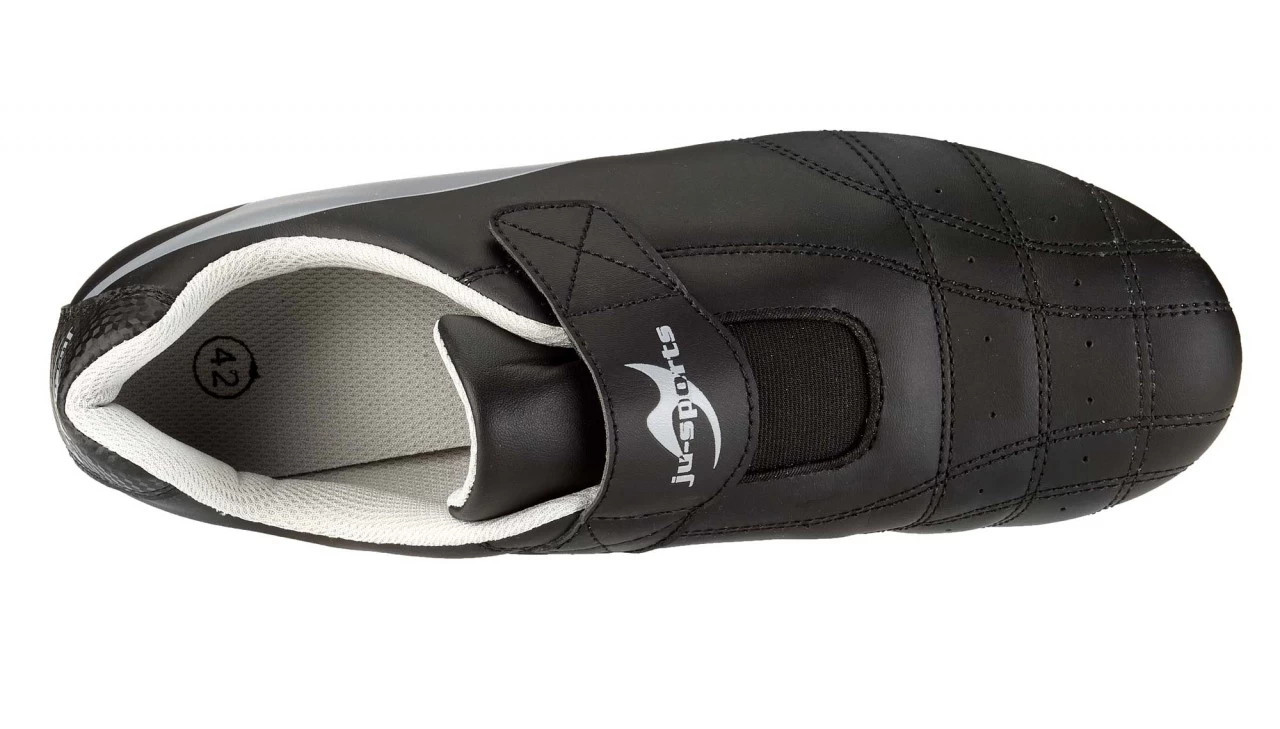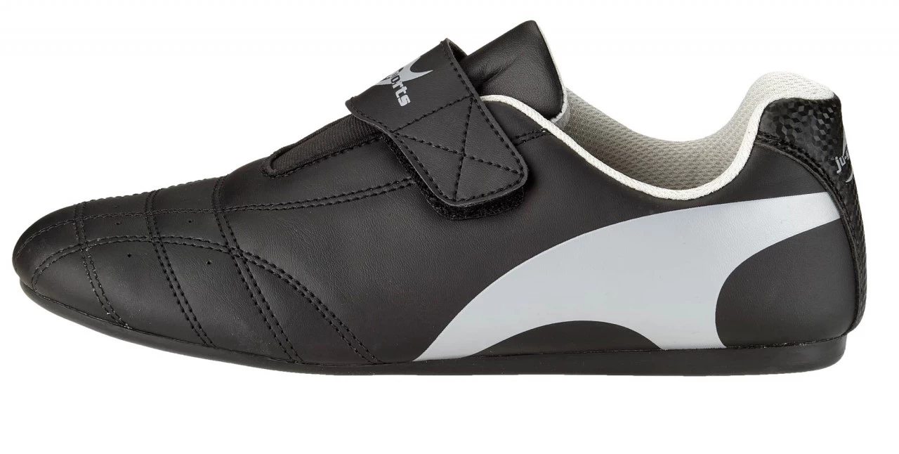 Ein Kampfsport-Sneaker mit sensationellem Preis-Leistungsverhältnis! Das abgestimmte Design und sein funktioneller Fit eignen sich für alle Kampfstile auf und neben der Matte. Der „Korea“ kann mit dem Klettverschlussband auf dem Fußrücken enger gemacht werden und sitzt daher richtig gut! Das Profil und der Drehpunkt auf der Sohle sind für Mattensportarten perfekt geeignet. Das Ju-Sports Logo auf dem Klettverschluss und die Fersenkappe im Carbon-Look geben dem Schuh den besonderen Touch.