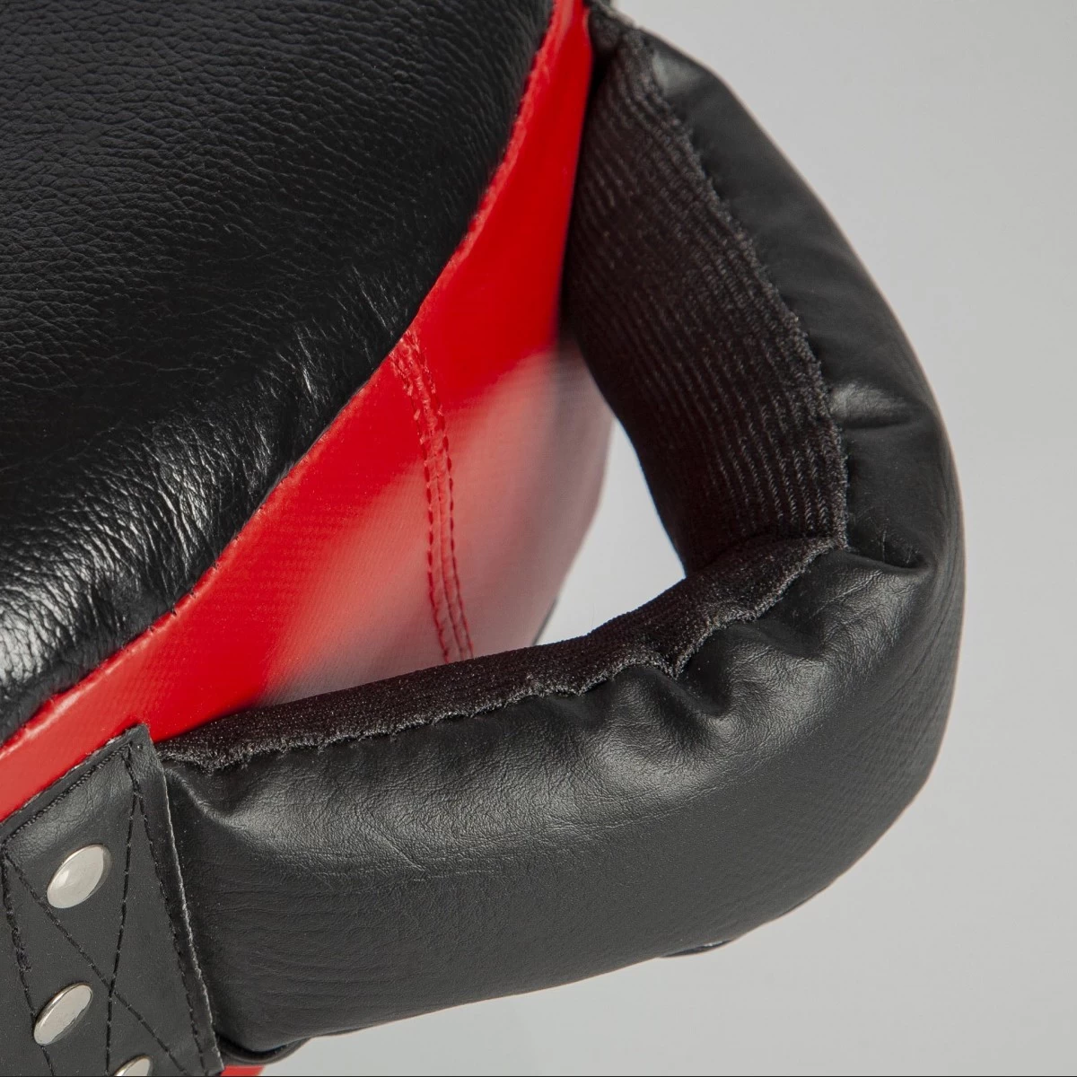 Die handgefertigte Qualitätslederkonstruktion sorgt für die Langlebigkeit der Schlagflächen, kombiniert mit einer hochdichten Schaumstoffpolsterung. Gepolsterte Griffe bieten den nötigen Komfort und soliden Halt; befestigt mit zusätzlichen Metallnieten halten die Griffe so auch den härtesten Schlägen problemlos stand.