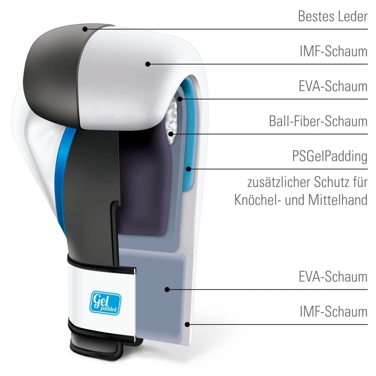 Die nächste Generation unseres beliebten Boxhandschuhs bietet eine weiter verbesserte ergonomische Form und noch bessere Polsterung. Mit dem PSGelPadded Gelpolster im Bereich der Knöchel und dem vorderen Teil des Handrückens, werden Deine Knöchel und Sehnen am Mittelhandknochen zusätzlich geschont.