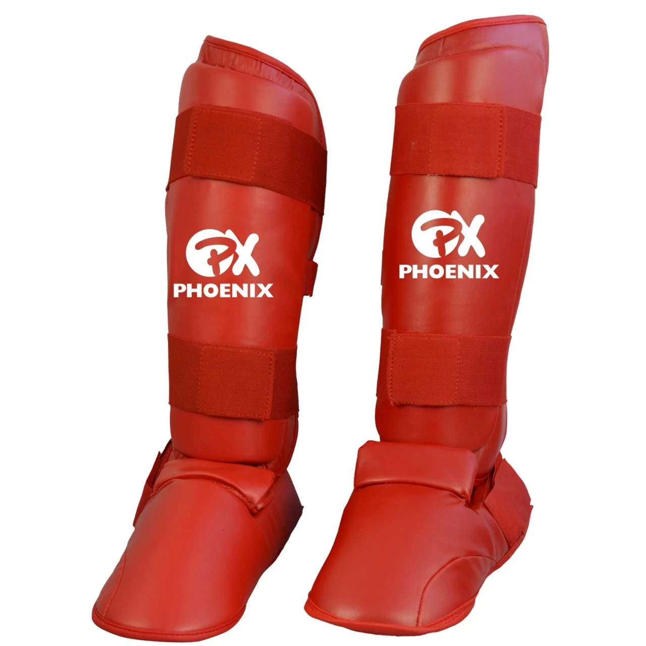 Karate Kumite Schienbein-Spannschutz aus Kunstleder, mit abnehmbarem Spannschutz.