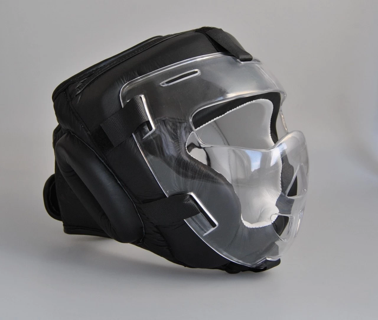 Kopfschützer mit Plexiglas-Visier für Waffenkampf und Techniktraining