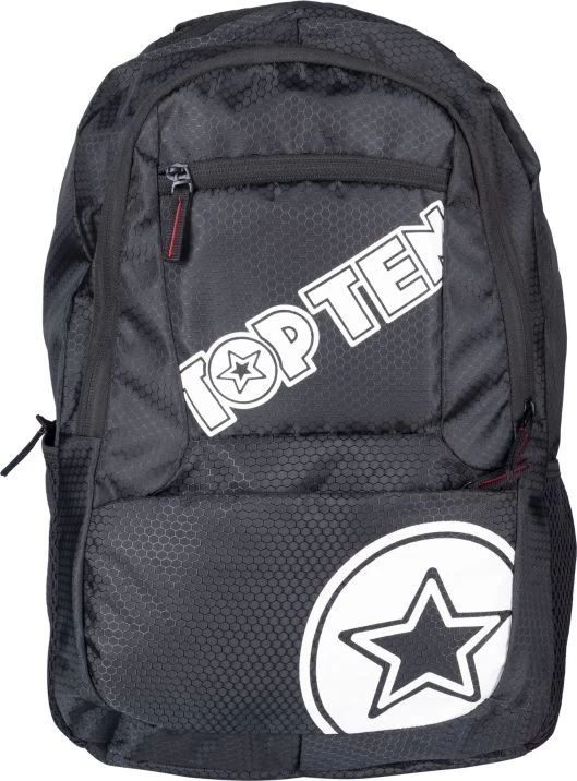 Hast du den Durchblick? Mit dem TOP TEN Rucksack „Hexagon“ aus strapazierfähigem Wabenpolyester fällt es dir leicht, unterwegs deine Siebensachen im Blick zu behalten. Das vielfältige Fächersystem bietet ausreichend Platz, um den „Hexagon“ als Daypacker zu nutzen. Neben dem großen Hauptfach samt innenliegendem Einsteckfach, garantiert das Ordnungssystem mit 3 weiteren Reißverschlussfächern auf der Front sowie einem von außen zugänglichem Bodenfach viel Platz für alles, was mitmuss. Selbst voll beladen lässt sich der Rucksack dank seiner gepolsterten und längenverstellbaren Rückenträger angenehm schultern. Im Design setzt TOP TEN auf seine bekannten Marken-Brands mit Schriftzug und Sternen-Logo. Ein gepolsterter Tragegriff gibt dem roten oder schwarzen „Hexagon“ Sportrucksack beste Voraussetzungen für den mobilen Einsatz.