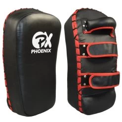 PHOENIX PX Thai Pad, Echtleder, Paarweise, Schwarz-rot. Muay Thai Pratzen
