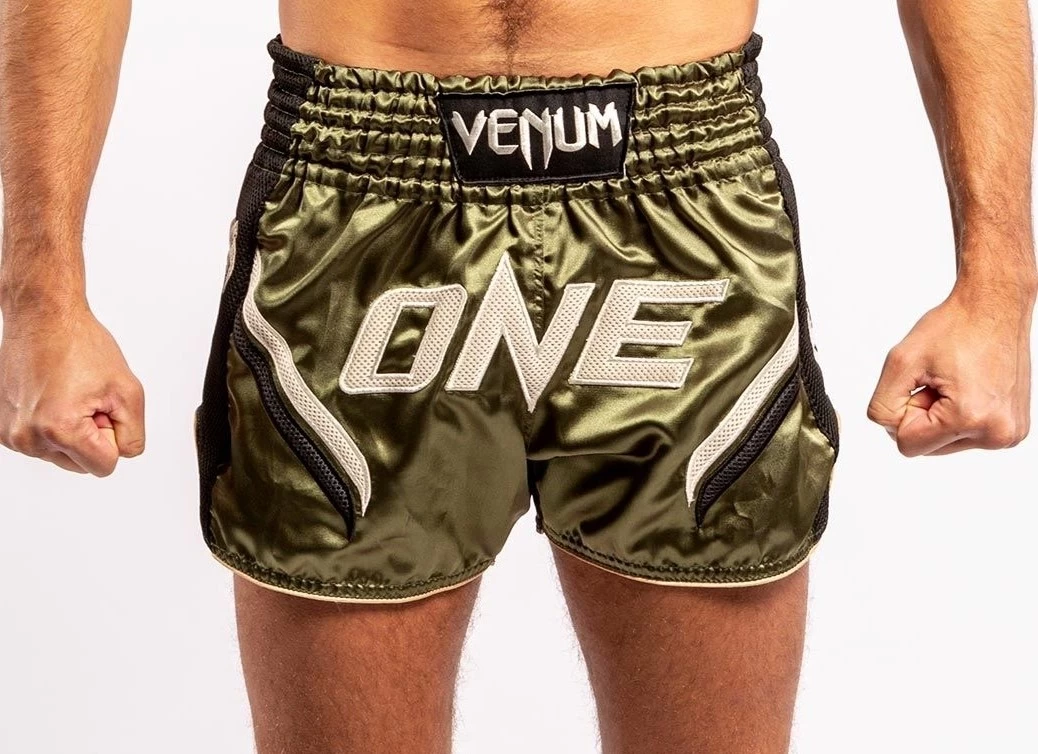 Die ONE FC Impact Muay Thai Shorts sind die einzigartige Kombination aus traditioneller thailändischer Handwerkskunst und technischem Venum-Design.